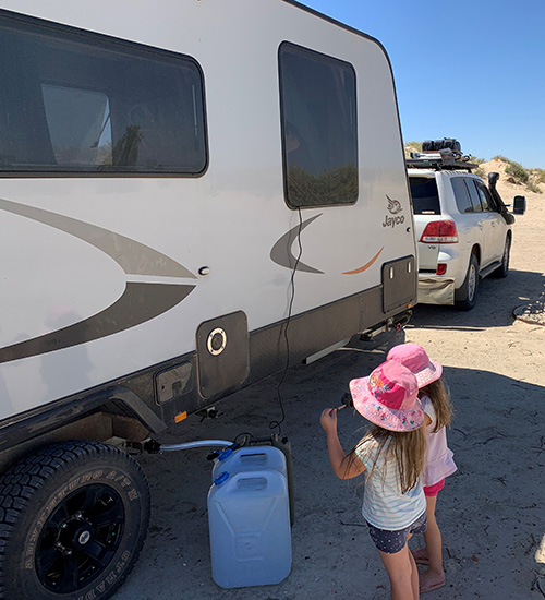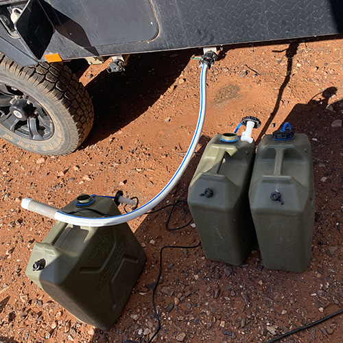 Before our 1.5 year lap of Australia (2020 – 2021), I hand-built a 12V water transfer pump kit using my professional experience as a pumping and water systems designer, because I knew that our trip would be greatly enhanced by getting off-grid in the remotest parts of Australia. Remote area travel can be highly unpredictable, so improved water security is essential!
