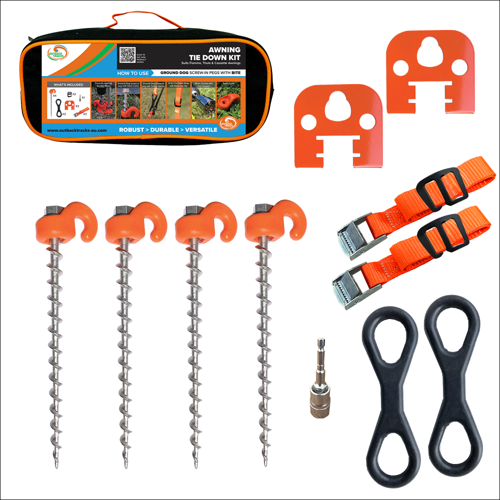 The Awning Tie Down Kits include: